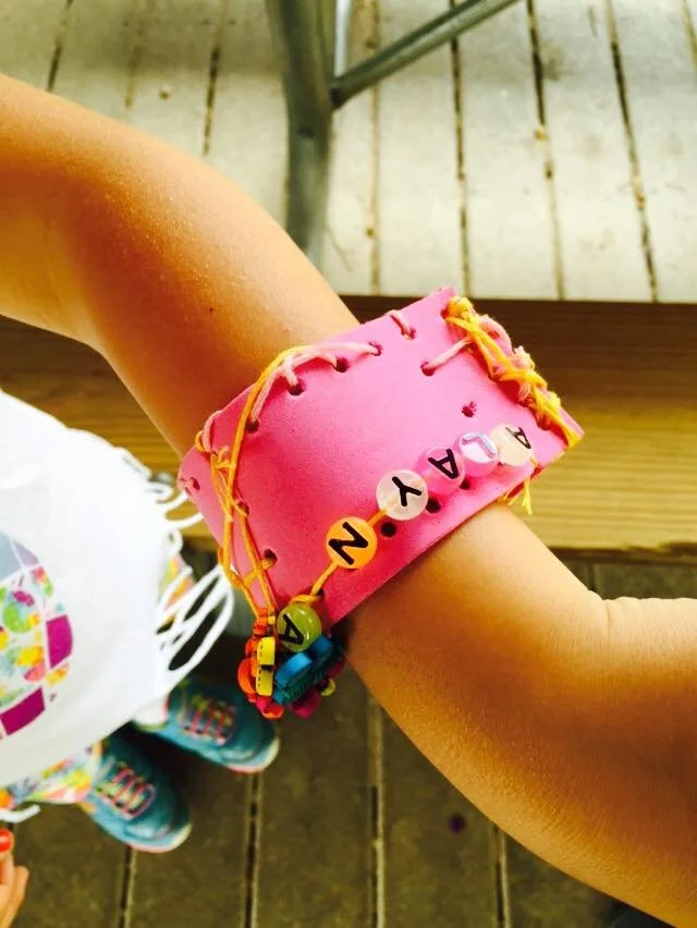 Create a fabric bookmark and sew on buttons to spell your name.